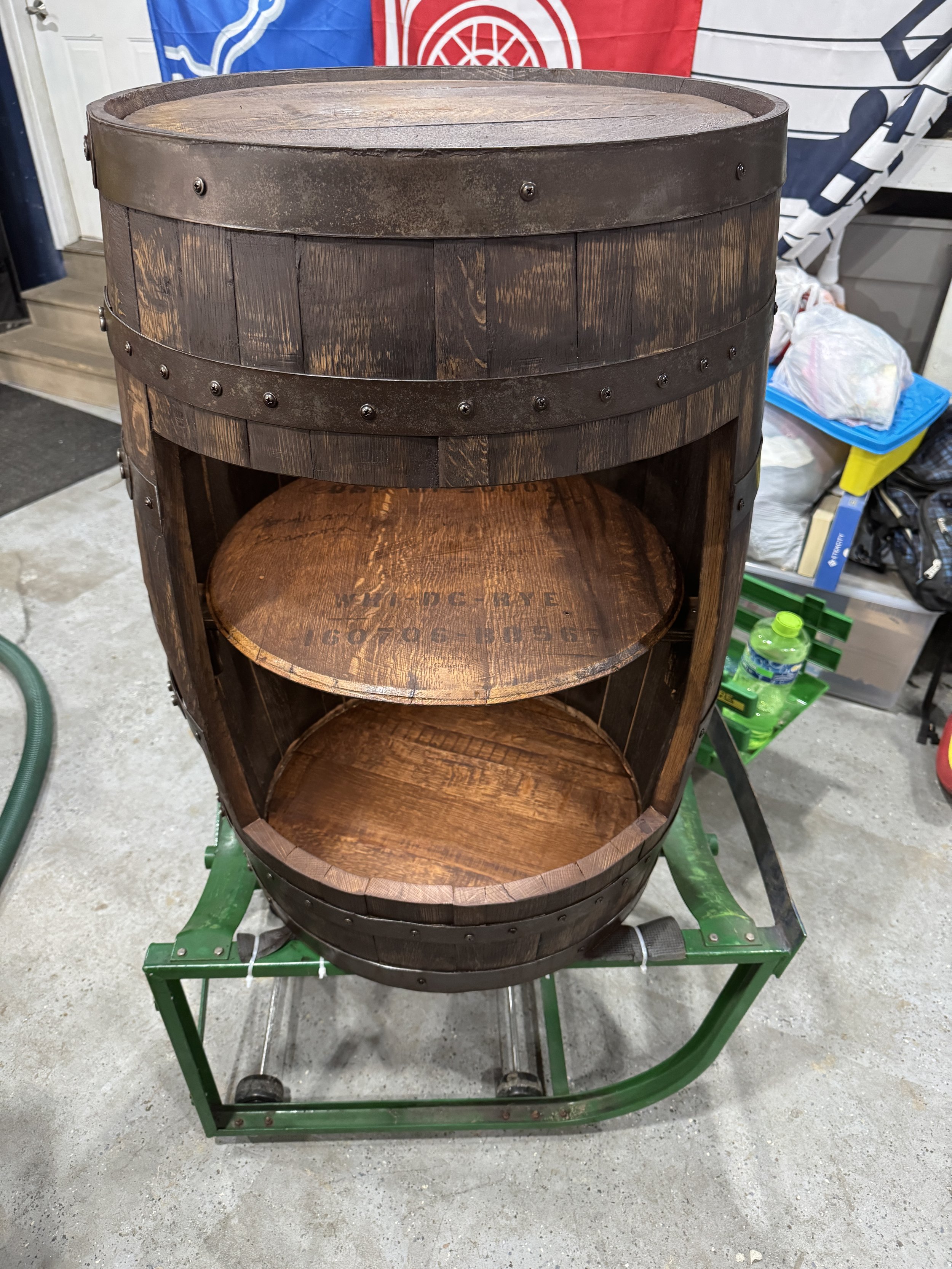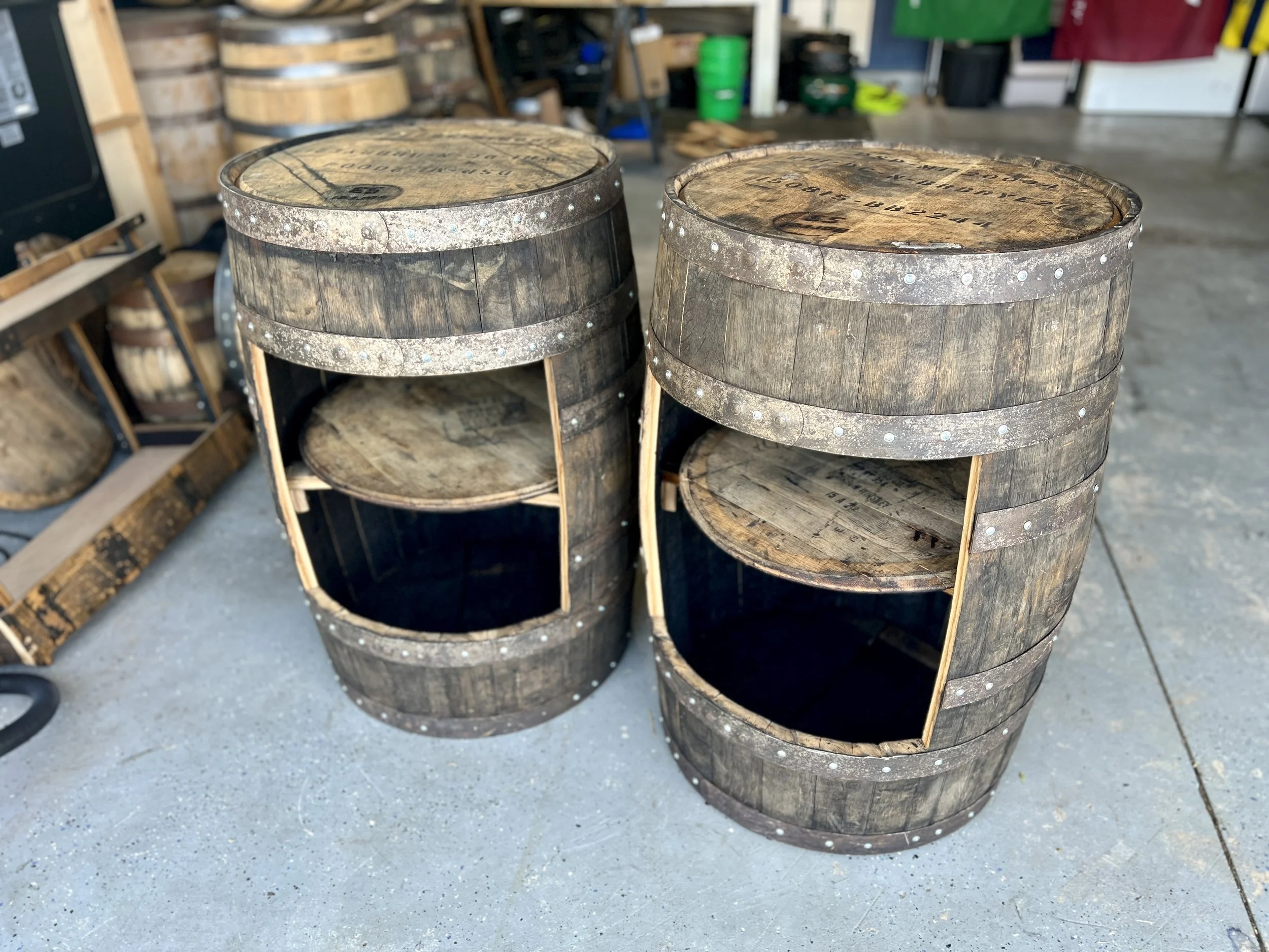 This open-front full-barrel cabinet is a tribute to traditional whiskey storage — no doors, no distractions, just the full depth of display for your finest selections. Every curve tells a story of time, char, and craftsmanship.